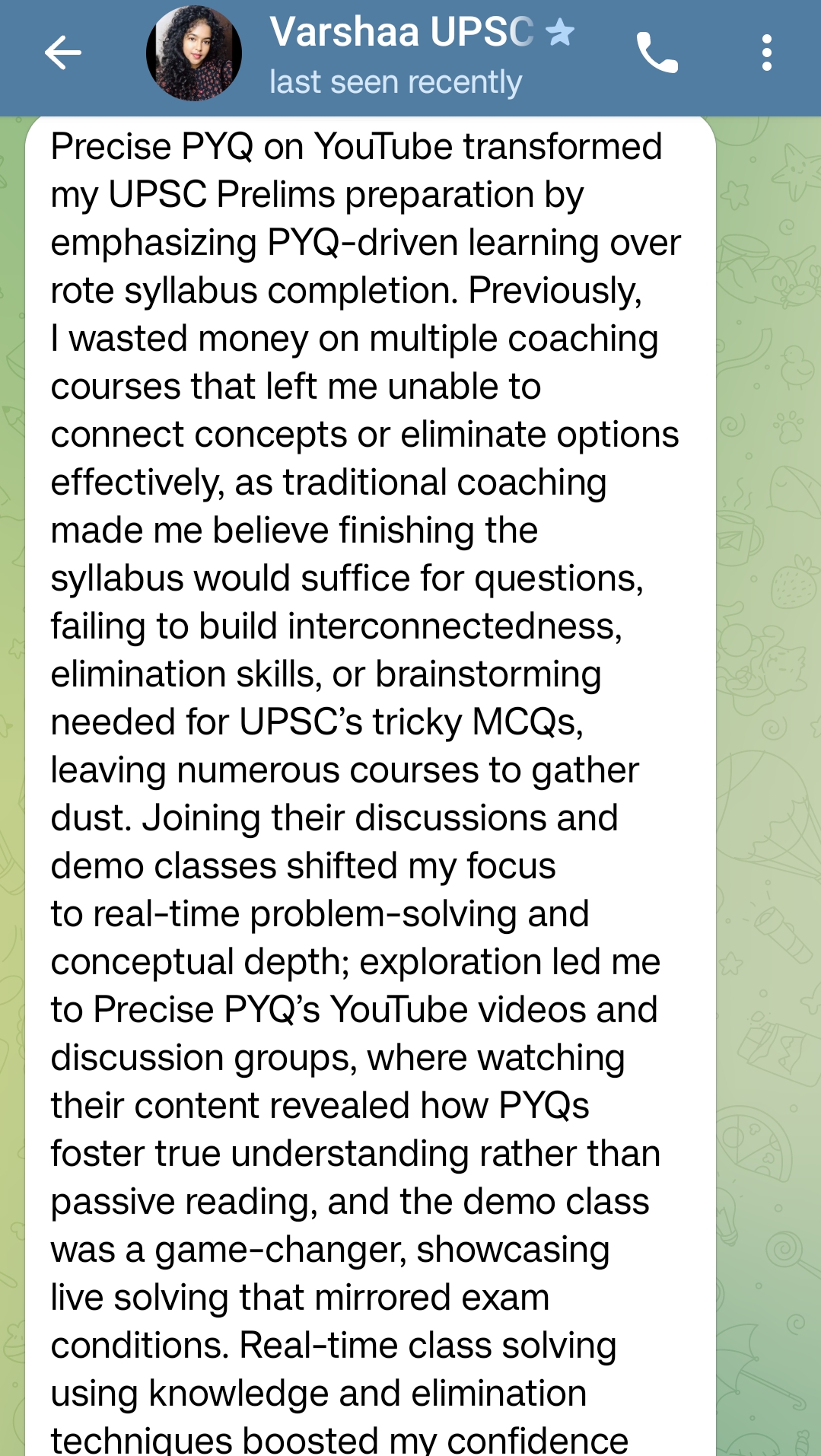 Precise PYQ is built on this exact method. It is designed to help aspirants move beyond passive reading and develop the MCQ acumen necessary to score consistently high marks in Prelims.